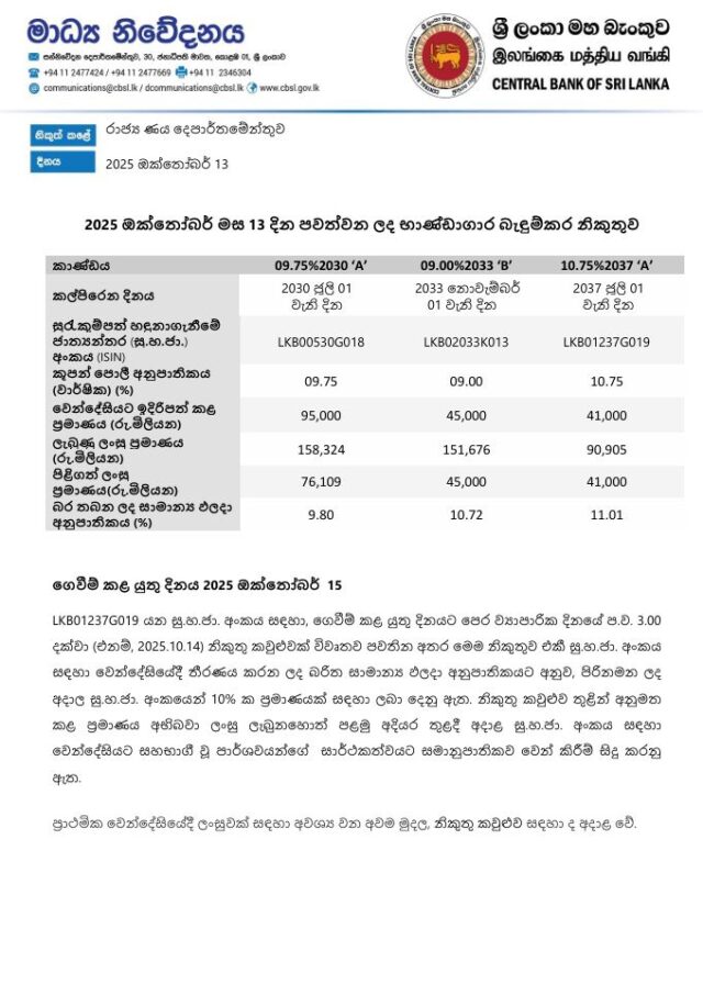 ලංකා ව්යාපාරික පුවත් - LBNOctober 14, 20251min160භාණ්ඩාගාරබැඳුම්කරමහබැංකුව Related Articles ආර්ථිකබැංකුමූල්යව්යාපාර සහ ආර්ථික වාණිජ බැංකු විදේශ මුදල් අනුපාත – 06.03.2026 ආර්ථිකබැංකුමූල්යව්යාපාර සහ ආර්ථික වාණිජ බැංකු විදේශ මුදල් අනුපාත – 04.03.2026 ආර්ථිකබැංකුමූල්යව්යාපාර සහ ආර්ථික වාණිජ බැංකු විදේශ මුදල් අනුපාත – 27.02.2026 Post Views: 16