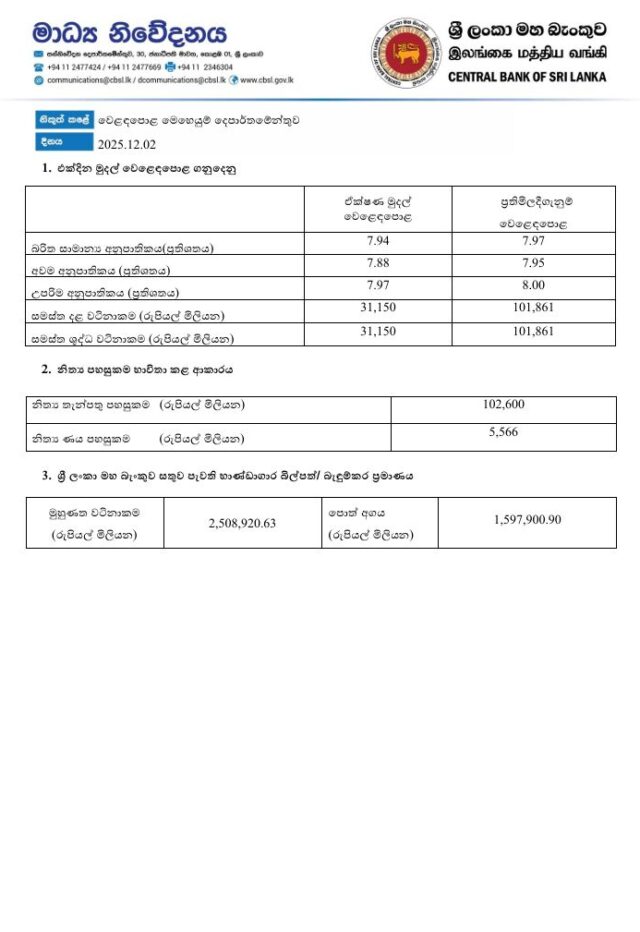 මුදල් වෙළෙඳපොළ ගනුදෙනු – 02.12.2025