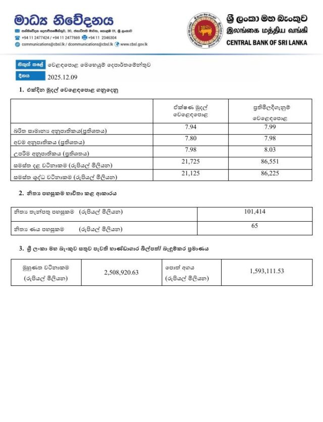 ලංකා ව්යාපාරික පුවත් - LBNDecember 10, 20251min140ගනුදෙනුමහබැංකුවමුදල්වෙළෙඳපොළ Related Articles ආර්ථිකබැංකුමූල්යව්යාපාර සහ ආර්ථික වාණිජ බැංකු විදේශ මුදල් අනුපාත – 04.03.2026 ආර්ථිකබැංකුමූල්යව්යාපාර සහ ආර්ථික වාණිජ බැංකු විදේශ මුදල් අනුපාත – 27.02.2026 ආර්ථිකබැංකුමූල්යව්යාපාර සහ ආර්ථික වාණිජ බැංකු විදේශ මුදල් අනුපාත – 26.02.2026 Post Views: 14