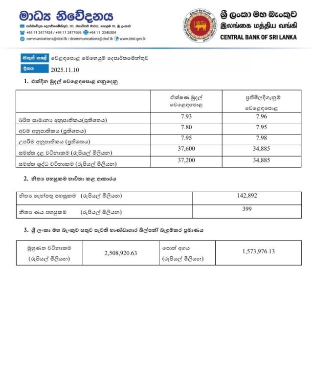 මුදල් වෙළෙඳපොළ ගනුදෙනු – 10.11.2025