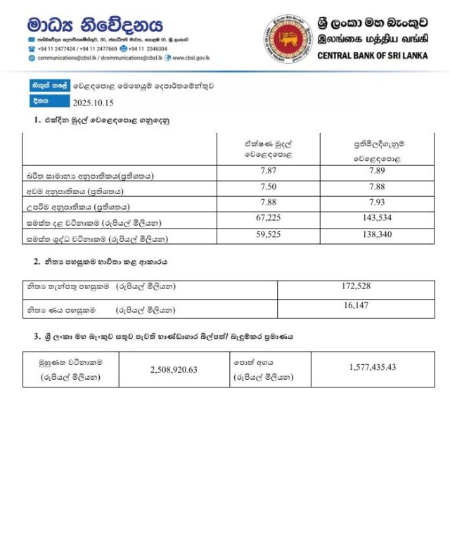 මුදල් වෙළෙඳපොළ ගනුදෙනු – 15.10.2025