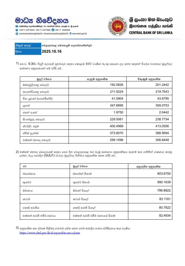 ලංකා ව්යාපාරික පුවත් - LBNOctober 16, 20251min220අනුපාතමහබැංකුවවාණිජබැංකු. විදේශමුදල් Related Articles ආර්ථිකබැංකුමූල්යව්යාපාර සහ ආර්ථික වාණිජ බැංකු විදේශ මුදල් අනුපාත – 06.03.2026 බැංකු කොමර්ෂල් බැංකුවේ නව විධායක අධ්යක්ෂ සහ ප්රධාන මෙහෙයුම් නිළධාරී ලෙස හස්රත් මුණසිංහ මහතා පත් කෙරේ බැංකු ජයග්රාහකයන්ට iPhone 17 Pro පිරිනමමින් සෙලාන් බැංකුවේ ‘Swipes & Surprises’ ප්රවර්ධන වැඩසටහන නිමාව දකී Post Views: 22