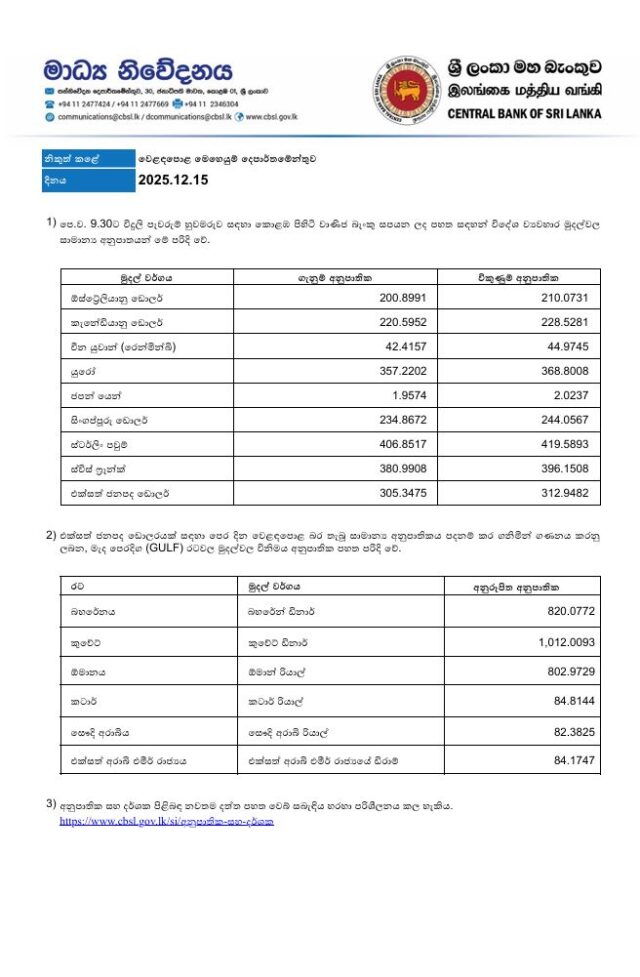 ලංකා ව්යාපාරික පුවත් - LBNDecember 15, 20251min130අනුපාතමහබැංකුවවාණිජබැංකු. විදේශමුදල් Related Articles ආර්ථිකබැංකුමූල්යව්යාපාර සහ ආර්ථික වාණිජ බැංකු විදේශ මුදල් අනුපාත – 06.03.2026 බැංකු කොමර්ෂල් බැංකුවේ නව විධායක අධ්යක්ෂ සහ ප්රධාන මෙහෙයුම් නිළධාරී ලෙස හස්රත් මුණසිංහ මහතා පත් කෙරේ බැංකු ජයග්රාහකයන්ට iPhone 17 Pro පිරිනමමින් සෙලාන් බැංකුවේ ‘Swipes & Surprises’ ප්රවර්ධන වැඩසටහන නිමාව දකී Post Views: 13